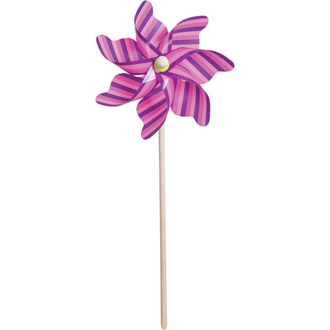 Traditional pinwheels, only better! Premier's new line of pinwheels are sold in an assortment of 24 in each case. This case contains five different colors of the stripes design. Colors are: Yellow/Orange, Purple/Pink, Black/White, Blue/Light Blue, Green/Light Green.