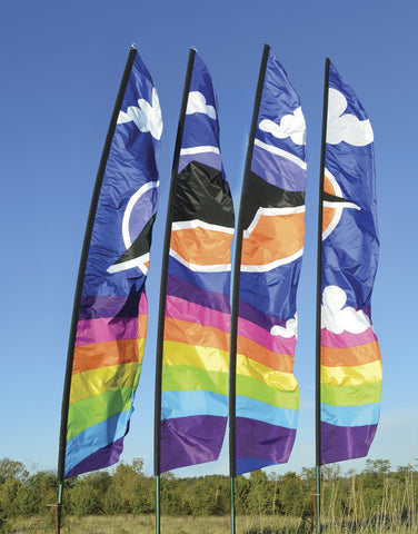 Go all out with our giant 16 ft. Feather Banners when you need to make a statement! Made with SunTex(TM) polyester fabric which radiates a beautiful stained-glass effect in sunlight. Four feather banners combine to proudly display Premier Kites' logo.